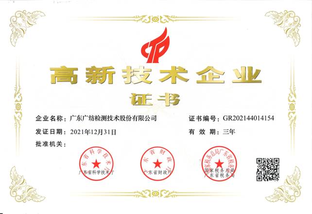 近日,广东广纺检测技术股份有限ledong乐动网页收到2021年高新技术企业证书。这是广纺检测自2004年首次通过高企认定后,连续5次通过高企重新认定。高企的认定意味着广纺检测在技术实力、持续创新能力、核心自主知识产权等方面获得了国家级认可。未来,广纺检测将持续推动创新,提升技术实力,更好的服务社会。
