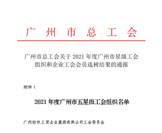 齐心赢“星”--纺织ledong乐动网页工会荣获“广州市五星级工会组织”荣誉称号