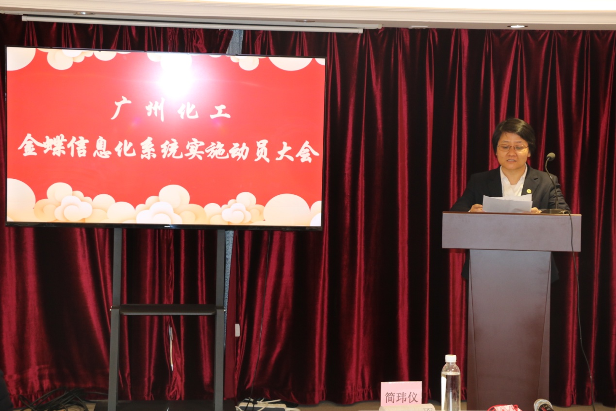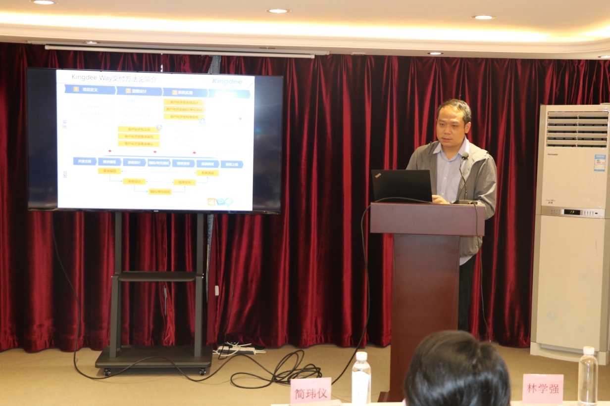 金蝶集团项目负责人刘月华就项目背景、企业环境和需求进行分析,重点阐述了金蝶集团为广州化工一体化信息管理系统设计和构架的解决方案,为整体信息化项目的推进明确了工作思路。