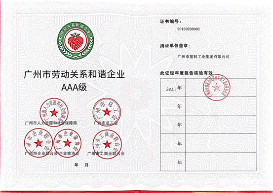 在2021年广州市“劳动关系和谐企业AAA级”评选活动中,塑料ledong乐动网页荣膺2021年度广州市“劳动关系和谐企业AAA级”称号。自2016年开始,塑料ledong乐动网页已经连续六年获此殊荣。