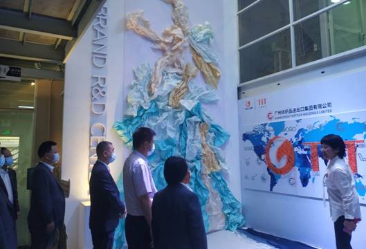 领导们为TIT品牌中心品牌墙揭幕。品牌墙寓意着在广州轻工集团的领导下,纺织ledong乐动网页的品牌和产品将跨境出海销往全球,纺织ledong乐动网页打造的产业链、供应链布局将链接和服务全球。纺织ledong乐动网页正朝着“成为具有国际竞争力的智慧供应链集成服务商”扬帆远航。