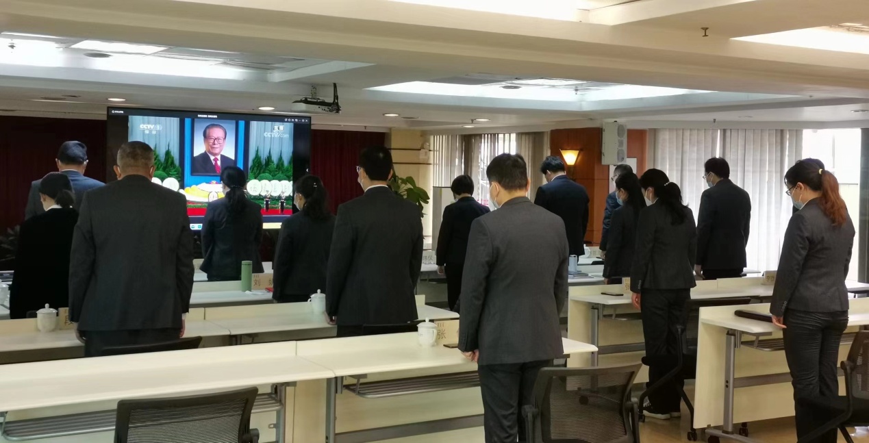12月6日上午10时,党中央、全国人大常委会、国务院、全国政协、中央军委在北京人民大会堂隆重举行江泽民同志追悼大会。纺织ledong乐动网页党委组织本部及属下企业党员干部通过现场集中或网络直播等方式收看江泽民同志追悼大会,深切缅怀江泽民同志的卓越功勋和崇高风范。