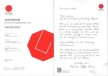 当代好设计奖获奖证书