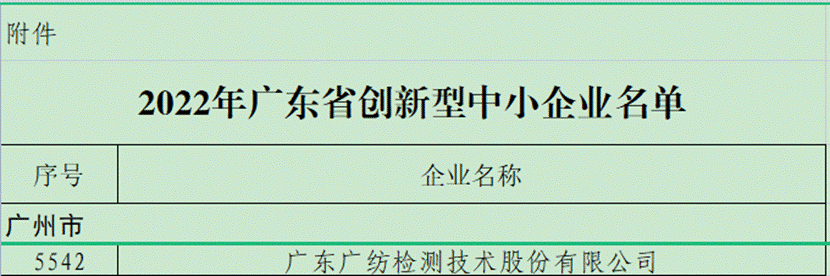 喜报:广纺检测获“2022年广东省创新型中小企业”