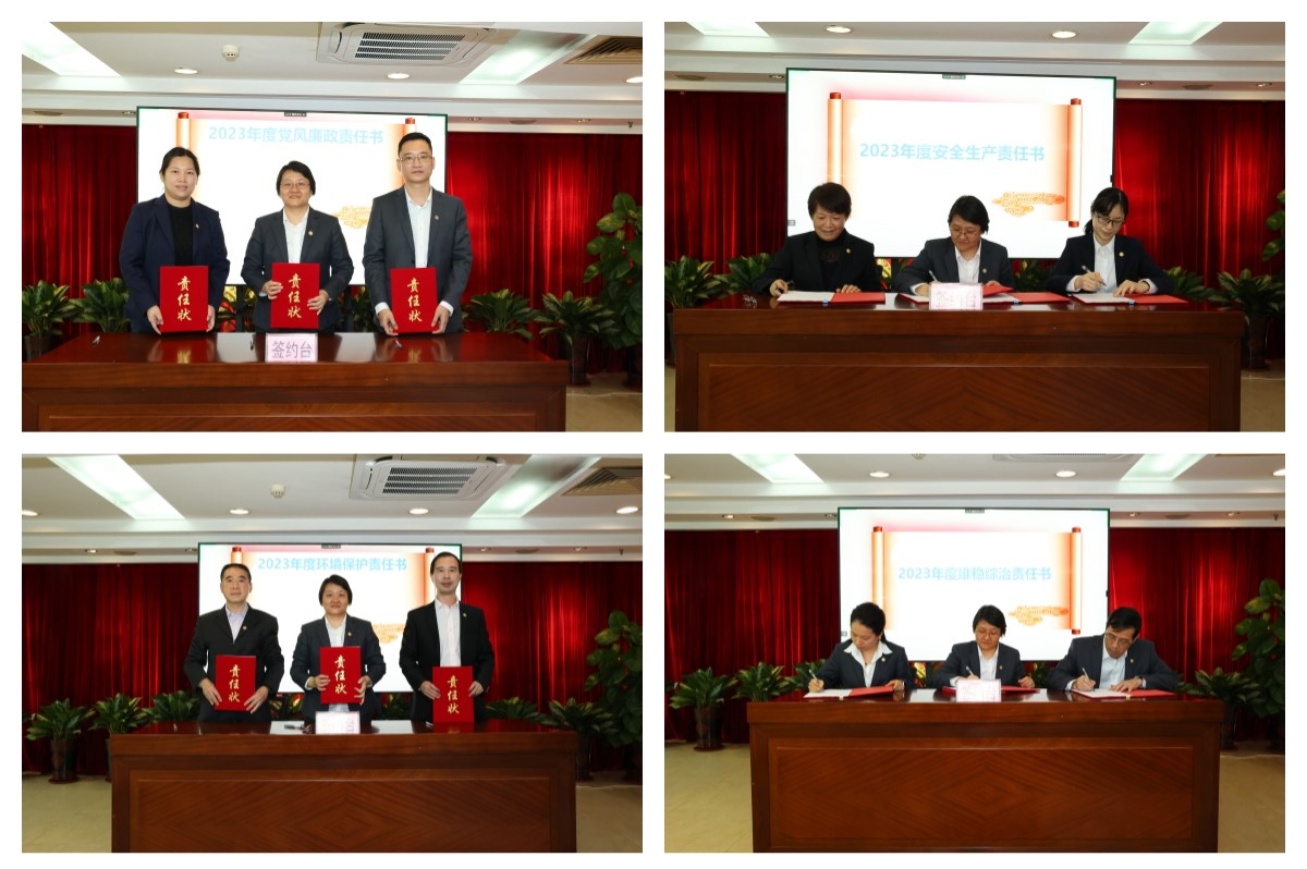 ledong乐动网页党委书记、董事长简玮仪与企业代表分别签订了2023年党风廉政建设、安全生产目标管理、环境保护目标管理、维护稳定及社会治安综合治理目标管理的责任书。