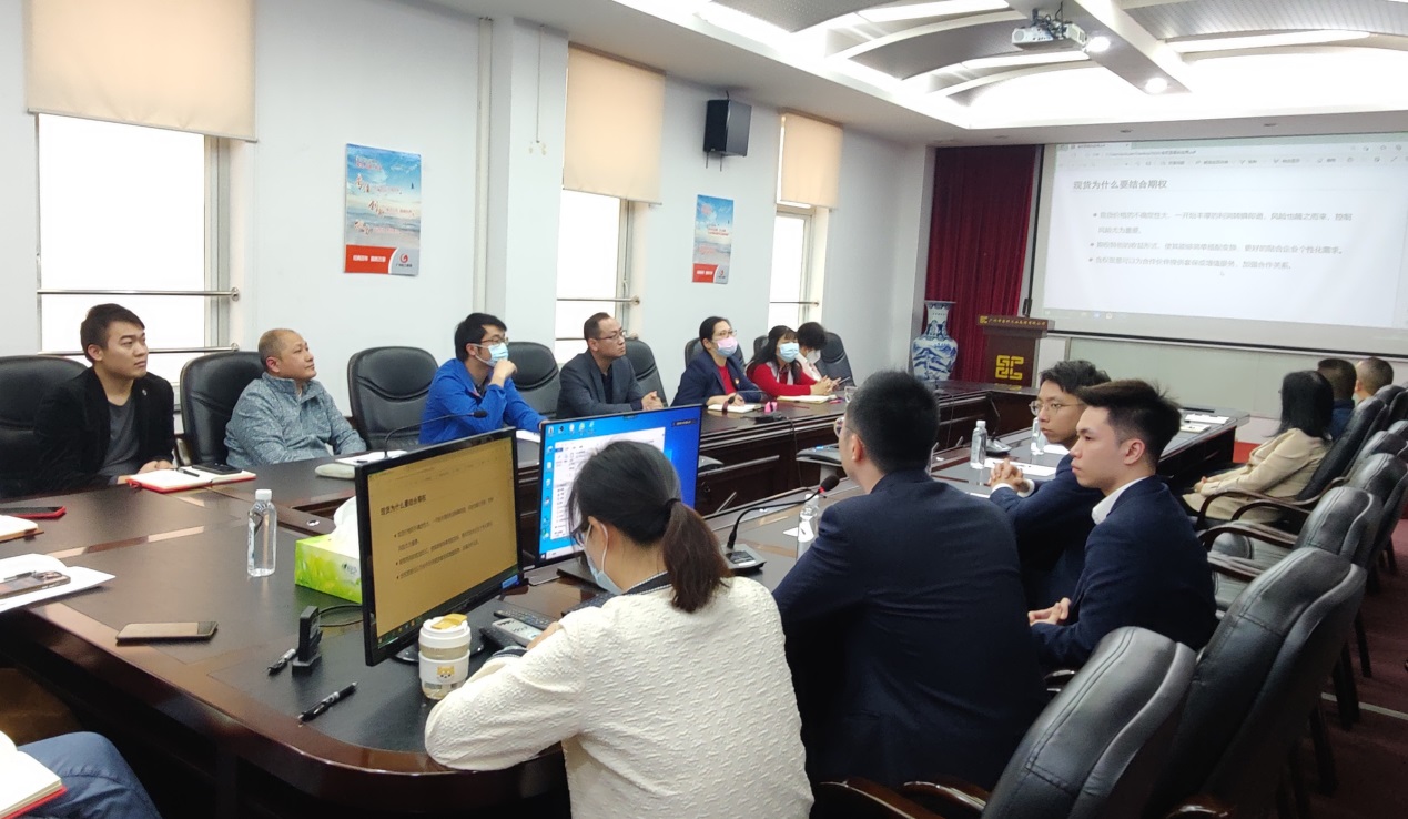 本次培训通过图文并茂的方式深入细致对期货期权知识和风险点作了介绍,并结合相关案例与参会人员进行了互动交流。运用期权金融工具能够提高套期保值效果,增强业务贸易盈利能力,实现不同维度的风险管控目标。