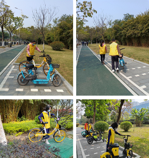 广纺检测团支部开展“整理共享单车,共创文明城市”志愿活动。大家齐心协力,将违停放在科研路和科翔路人行道上的共享单车整齐地摆放到指定区域,同时向群众宣传文明骑车、文明停车新风尚,努力推动群众养成“文明出行、有序停放、爱护共享单车”的习惯。