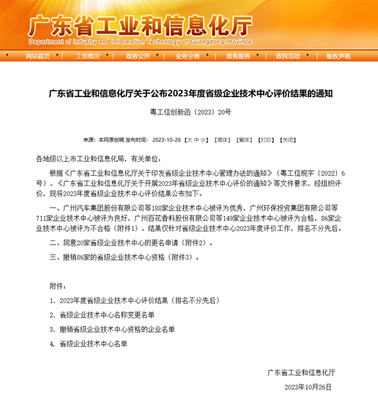 近日,广东省工业和信息化厅公布2023年度省级企业技术中心评价结果,ledong乐动网页顺利通过本次评价,连续多年获评省级企业技术中心称号。