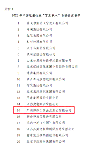 7月22日,《2023年中国服装行业百强企业》榜单发布,纺织ledong乐动网页连续三年登榜,位列2023年中国服装行业“营业收入”百强企业第15名!