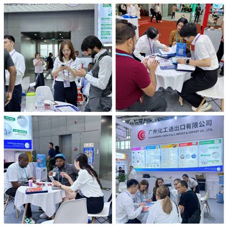 本届广交会,化工产品展位依然保持主通道地理优势,除常态化绿色布展以外,纺织ledong乐动网页与化工ledong乐动网页首次以统一风格进行连片布展,以全新的联合参展方式向全球客商展现创新专业的企业形象。把握绿色低碳产品市场的广阔机遇,化工ledong乐动网页坚持采用低碳生产工艺的新产品、新成果,展出以高效清洁、环保安全为亮点的日化洗涤、水处理、陶瓷化学系列产品;展会现场设置互动体验区,运用数字移动屏动态展示产品使用场景,开展首日即吸引了大量客商驻足,与参展团队进行深度接洽,为开拓新渠道、发展新市场奠定了良好的开端。