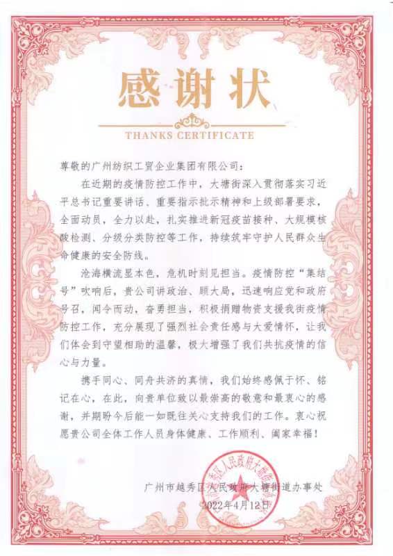 当前,广州疫情趋紧,4月12日,纺织ledong乐动网页党委书记、董事长简玮仪,党委副书记、纪委书记、工会主席丘海澜亲自带队,把1500盒利工民毛巾送到了越秀区大塘街道。